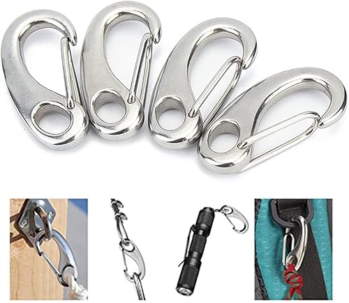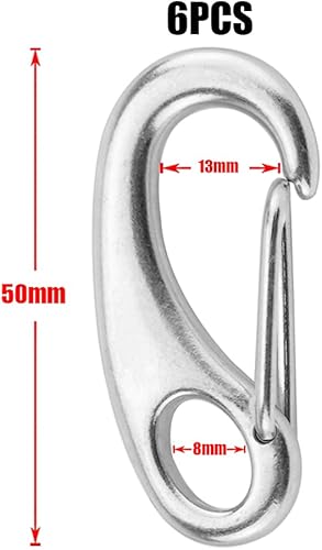 SyiXute 6 Stück Schnapphaken,304 Edelstahl Karabinerhaken Klettern Clips,50 mm Karabiner Clips,100 KG Tragkraft für Camping Klettern Wandern Outdoor