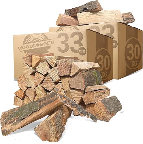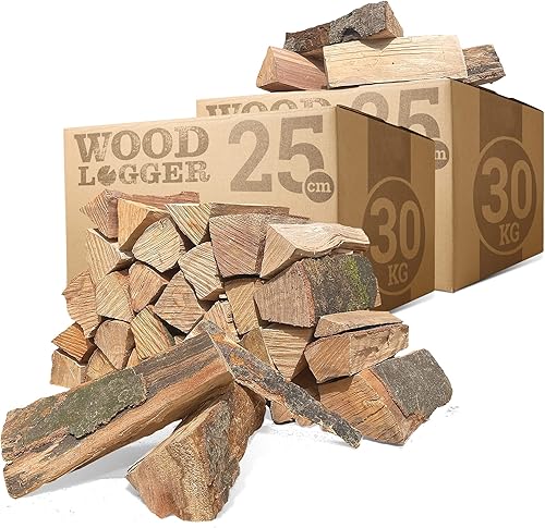 Woodlogger 60 KG Brennholz aus Buche I trockenes Kaminholz I ofenfertiges Feuerholz I reines Buchenholz I Holz für Kaminofen, Lagerfeuer, Feuerschalen, Ofen I Grillholz (Holz-Scheitlänge: 25 cm)