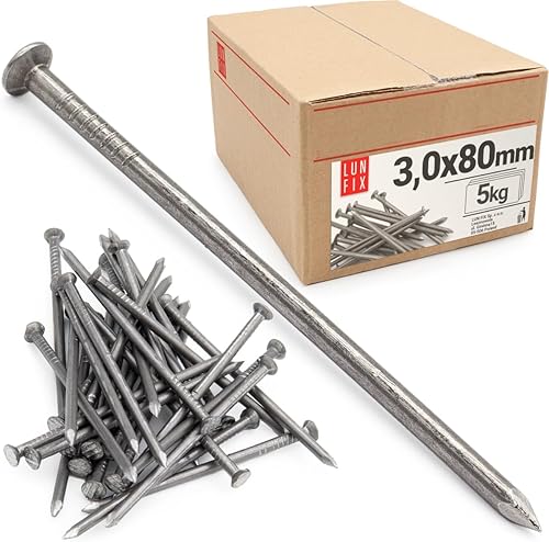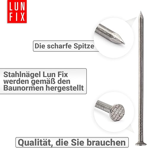 Lun Fix Drahtstifte 4,0 x 100 mm - 5kg (490 stück) Holznägel für Bauarbeiten Unverzinkter Baunägel Stahlnägel 100mm lang blank Nägel Senkkopf