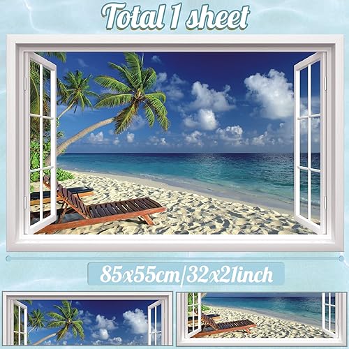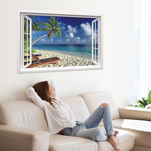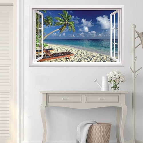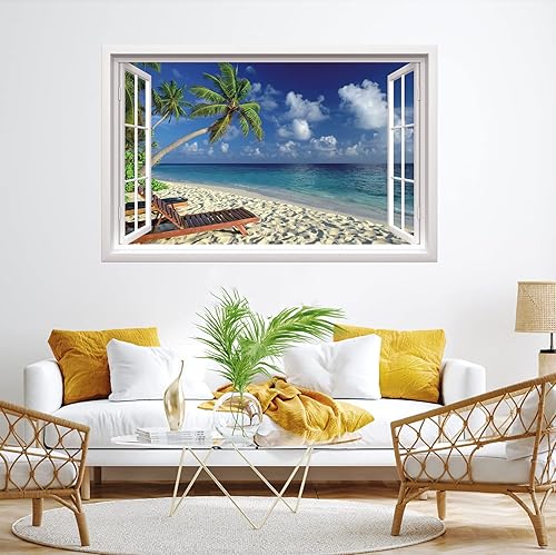 TOARTI 3d Palmen Meer Strand Beach Wandtattoo,85*55cm(BxH),Wandtattoo Wohnzimmer Landschaft,Selbstklebend Wandsticker Baum Poster,Vinyl Wandaufkleber Kaputter für Wohn chlafzimmer Küche Bad Aufkleber