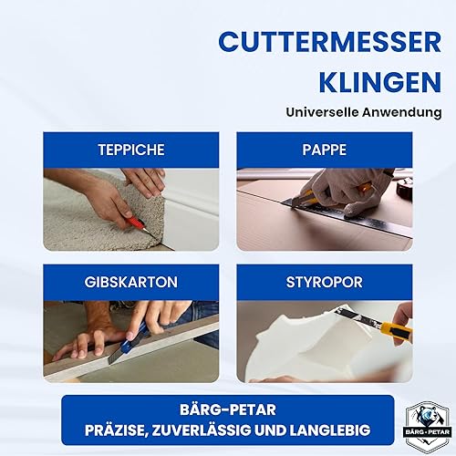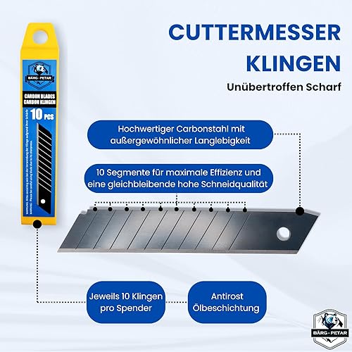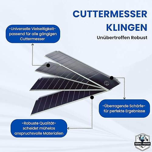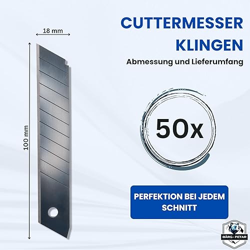 BÄRG-PETAR 50x Cuttermesser Klingen Schwarz 18mm Abbrechklingen - Teppichmesser Tapeziermesser Klingen - Ersatzklingen Karbon Carbon Black – Cutter Messer Klingen - Extrem Scharf