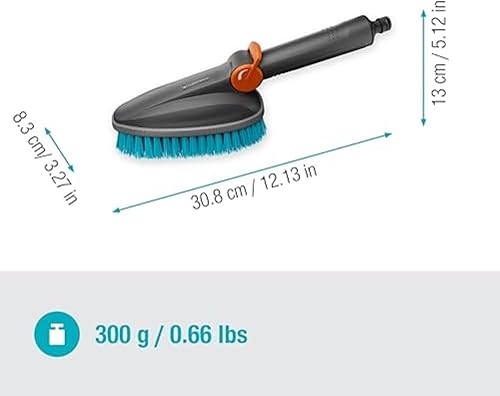 Gardena Cleansystem Handbürste M Hard: Reinigungsbürste mit Schlauchanschluss, für kleinere und unempfindliche Oberflächen, praktische 1-Hand-Bedienung, mit Durchflussregulierung (18846-20)