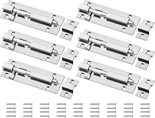 6 Stück Sicherheitstürriegel aus Edelstahl mit 36 Schrauben Schiebeschloss Türriegel Riegel Schiebetürschloss Schieberiegel für alle Innentüren