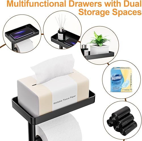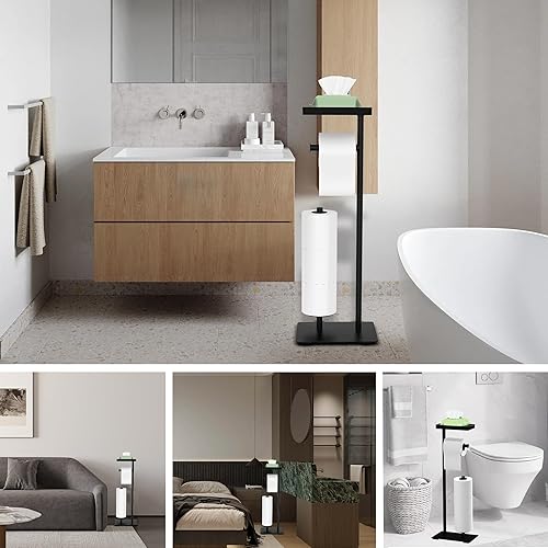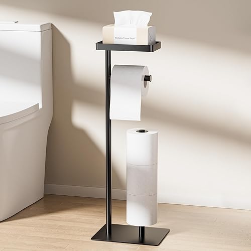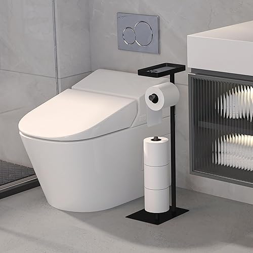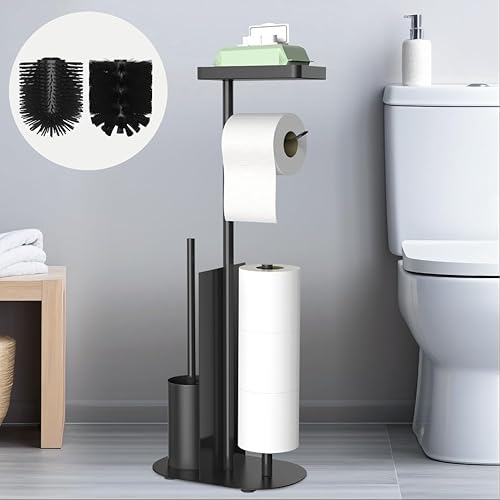 Toilettenpapierhalter Stehend Schwarz, FUNPALA Edelstahl Freistehend Klopapierhalter Stehend, Toilettenpapierständer Toilettenpapier Aufbewahrung mit Ablage und Ersatzrollenhalter