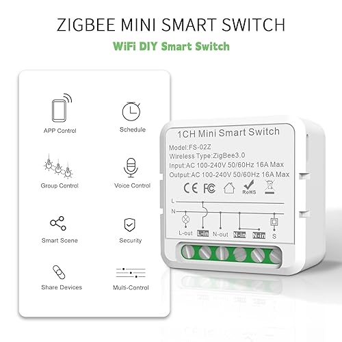 JAOGAUS Zigbee Mini Smart Schalter, DIY Wlan Smart Switch Modul, Smart Lichtschalter Zigbee Hub Erforderlich, Hausautomation, Kompatibel mit Smart Life/Tuya APP, Alexa, Google Home, Home Assistant (1)