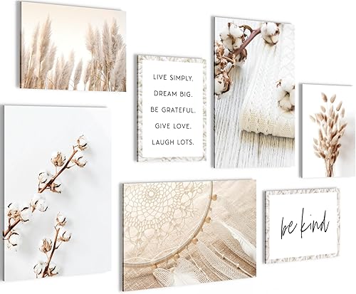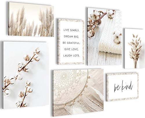 Novart Wandbilder Set Boho Sand Strand Beige - KEIN EXTRA RAHMEN BENÖTIGT - Modern Deko - Wohnzimmer Schlafzimmer Flur N035372a