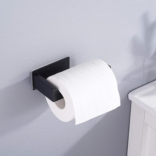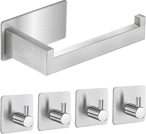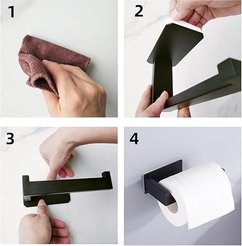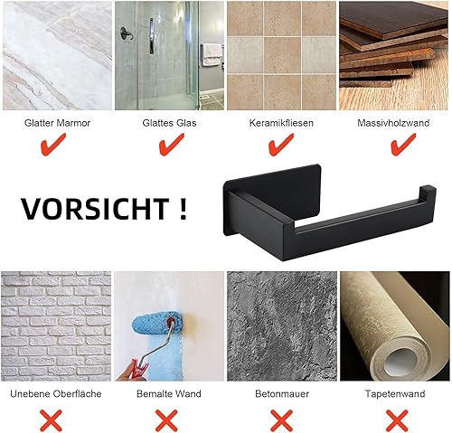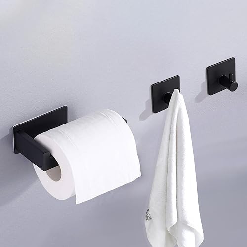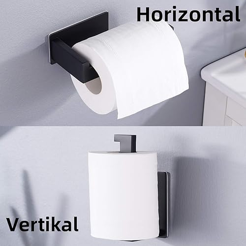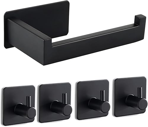 Toilettenpapierhalter Ohne Bohren, Selbstklebend Klopapierhalter WC Papierhalter Edelstahl Toilettenpapierrollenhalter mit 4 Stück Handtuchhaken für Küche und Badzimmer, Schwarz
