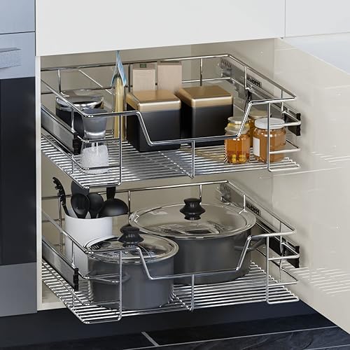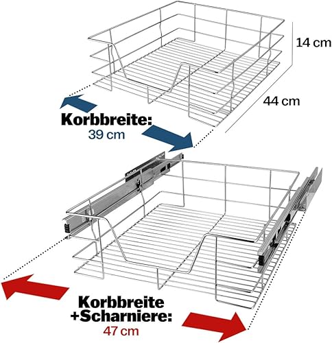 Casaria® 2x Teleskopschublade Schrank Schubladen Ausziehbar 50cm 25kg Belastbar Verchromt Korbauszug mit Zubehör Haushalt Küchenschrank Kleiderschrank