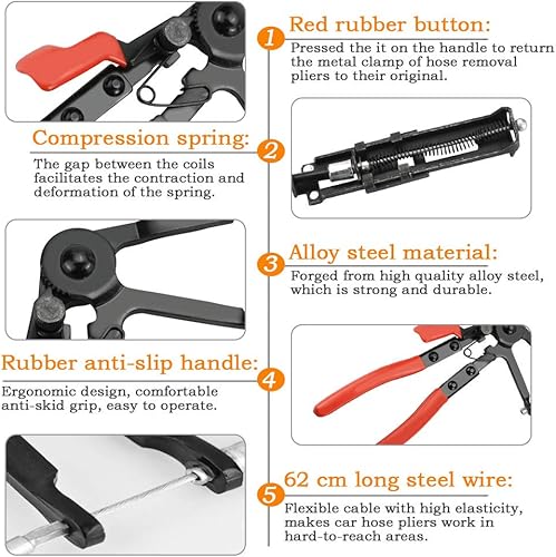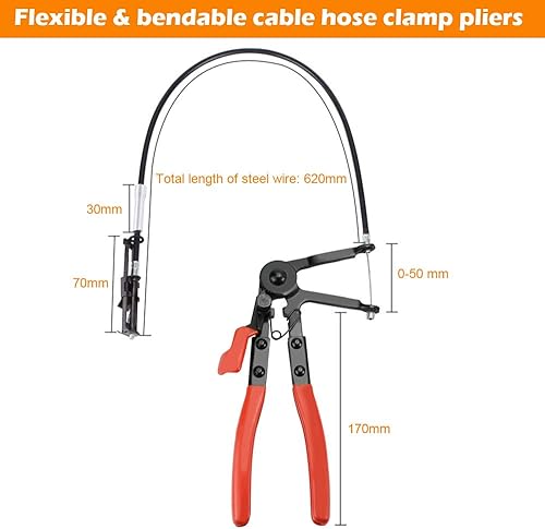 Favengo Schlauchklemmenzangen Schlauchschellenzange KFZ Schlauchschelle Flexible Spezial Schlauchklemmen Zange Werkzeug Federbandschellenzange Mit Drahtwelle HeizöL Wasserschlauch 620 mm fur Auto