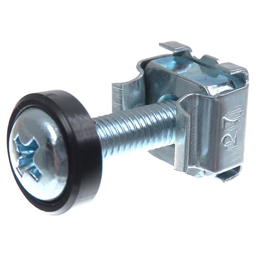SECCARO Käfigmuttern M5 im Set, zur Rack-Montage, Stahl verzinkt, 20 mm Schraube mit Kreuzschlitz (PH), Unterlegscheibe, 20 Stück