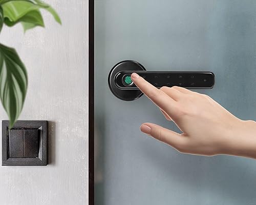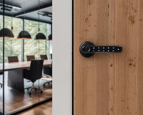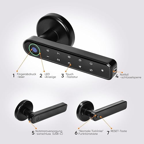 Miratic Türgriff Mit Fingerprint Elektrisches Türschloss mit Touch-Tastatur und SMART-Funktion Elektronisches Türschloss USB-C-Notstrom Bluetooth 5.0 Schwarz