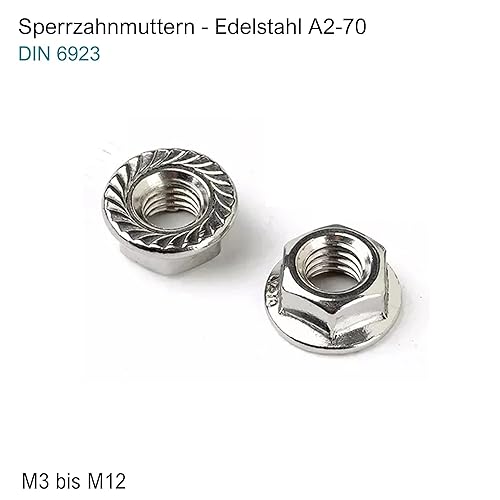 Sperrzahnmuttern Edelstahl A2 - DIN 6923 - Flanschmutter mit Sperrverzahnung (Gewinde: M10, Menge: 50 St.)
