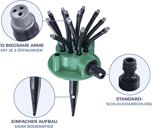 Maximex Gartensprinkler mit Flexi-Armen, 12 Flexible Arme, bewässert gezielt Beet & Rasen, wassersparend