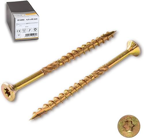 STRÜBER Holzschrauben mit Torx-Antrieb (5,0 x 80 mm / 200 Stück) Holzbauschrauben mit TX-Buchse - Spanplattenschrauben Gelb verzinkt - Senkkopfschrauben für Dachkonstruktionen - Universalschrauben