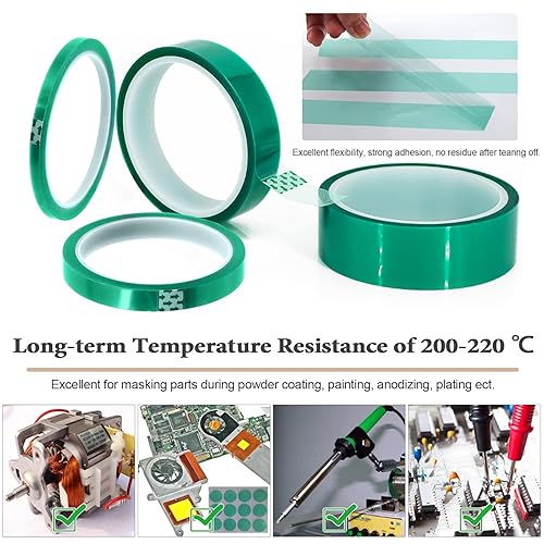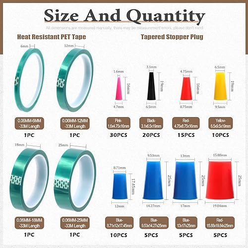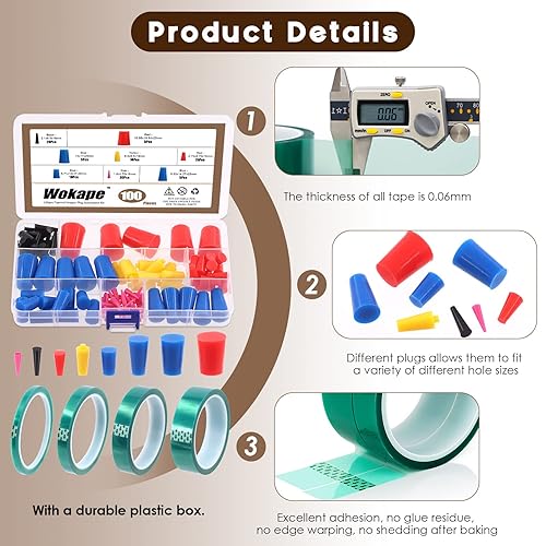 Wokape 104 Stück Hochtemperatur-Silikon-Gummi-Schutzstöpsel-Sortiment mit grüne Pulverbeschichtung Abdeckband PET-Klebeband