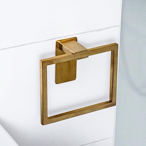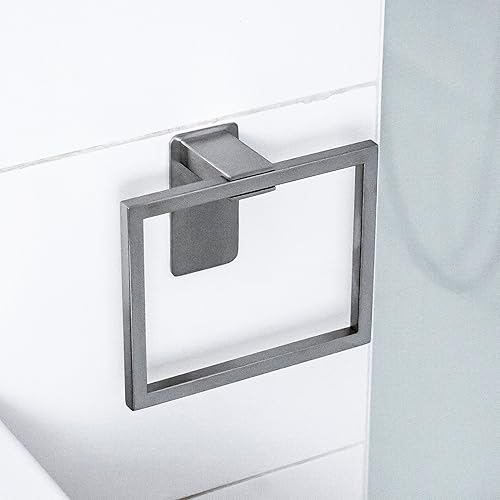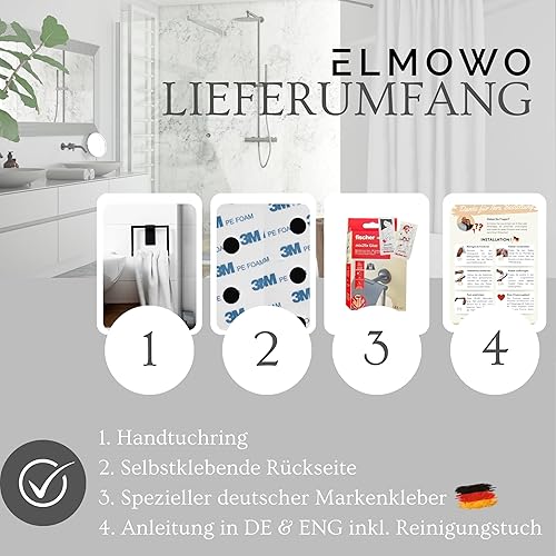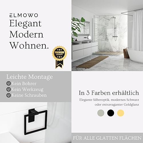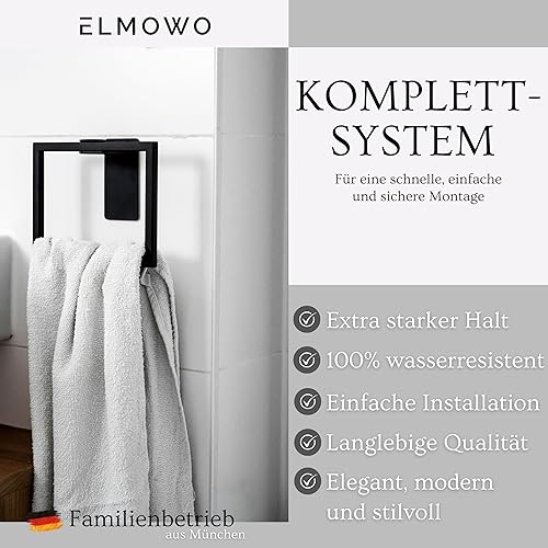 ELMOWO - Premium Edelstahl Handtuchring ohne Bohren selbstklebend inkl. Spezialkleber (extrem sicherer Halt) Design Handtuchhalter Ring für Bad, WC & Küche - Moderne Handtuch Halterung eckig (schwarz)