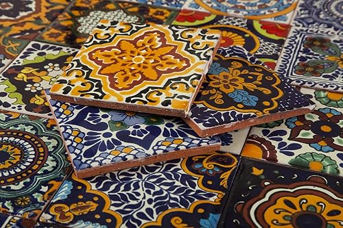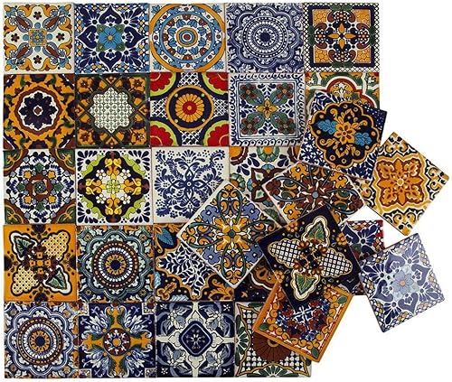 Cerames Mexikanische Keramische Fliesen Colorido - 30 dekorative mexikanische mosaik fliesen für Badezimmer, Küche, Dusche, Treppen, Küchenrückwand | Keramikmosaikfliesen 10,5x10,5 cm