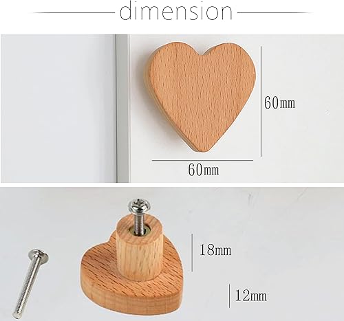 Auped 12PS Herz geformte hölzerne Knöpfe, hölzerne Schubladenzüge, natürliche herzförmige hölzerne Schrank Knöpfe Pull Griffe für Boho Möbel, Kommode Griffe, Küchenschrank, hölzerne Knauf
