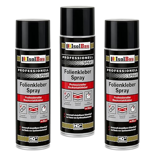 Isolbau Folienkleber-Spray - Professioneller Baukontaktkleber zum Verkleben von Bau- und Dampfsperrfolien - Für PVC, Holz, Beton uvm - 1 x 500 ml