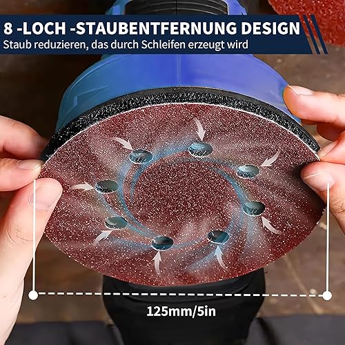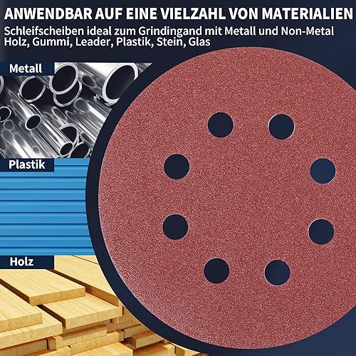 100 Stück Schleifpapier 125mm Klett, Schleifscheiben 5 in 8 Loch, P40/P60/P80/P120/P180/P240/P320/P400, Wandschleifer für Holz, Metall, Kunststoff, Zubehör für Elektrowerkzeuge