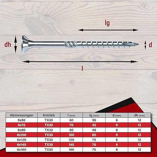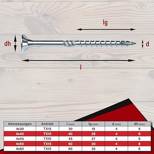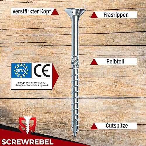 Screw Rebel Holzbauschrauben 4,5 x 50 mm ETA Zulassung - Senkkopfschraube, hell verzinkt, 500 Stück