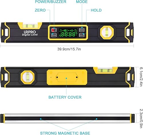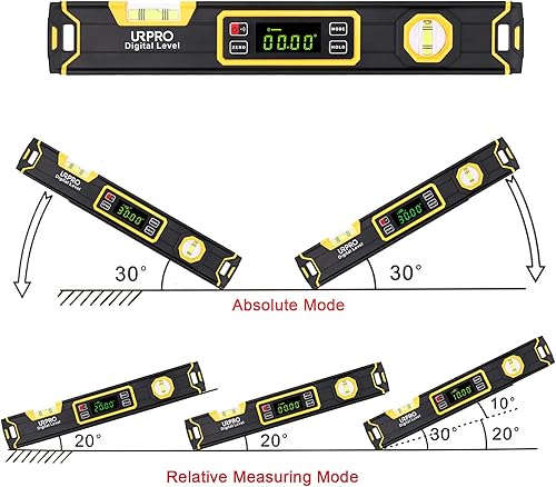 URPRO Neigungsmesser, digitales Torpedo-Niveau und Winkelmesser Neodym-V-Groove-Magnete Helles LCD-Display Smart Level IP54 staub-/wasserdicht