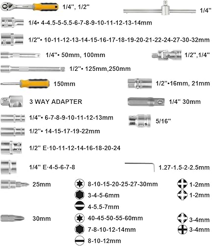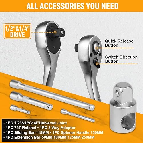 Hoteche Steckschlüsselsatz 110-teilig 1/4'&1/2' Werkzeugkoffer-Set - Professionelles Werkzeugset