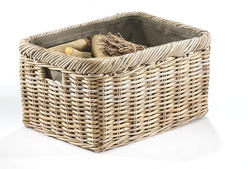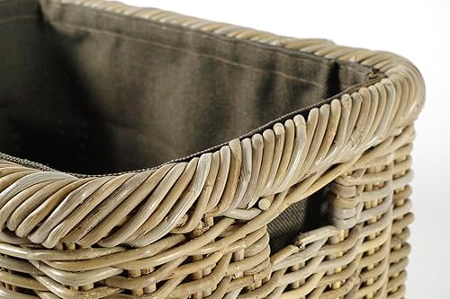 Kobolo Kaminholzkorb – Rattan Holztrage für Brennholz, Kubu grau mit anthrazit Textileinsatz, Feuerholzkorb
