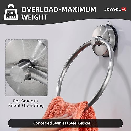 Handtuchring - JOMOLA Saugnapf Handtuchring Handtuchhalter Ohne Bohren Rund Handtuchstange Edelstahl Wandmontage Badetuchhalter für Küchen & Badezimmer Aufbewahrung Gebürstet Nickel