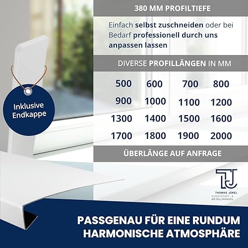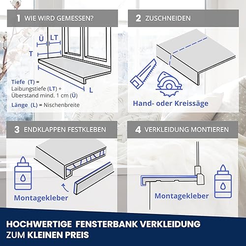 TJ Fensterbank Verkleidung Marmoroptik 38 x 160 cm / 3,5 mm Dicke Fensterbank Verkleidung Innen inkl. Seitenabschluss/formstabile und lichtechte Fensterbank Abdeckung nach Maß