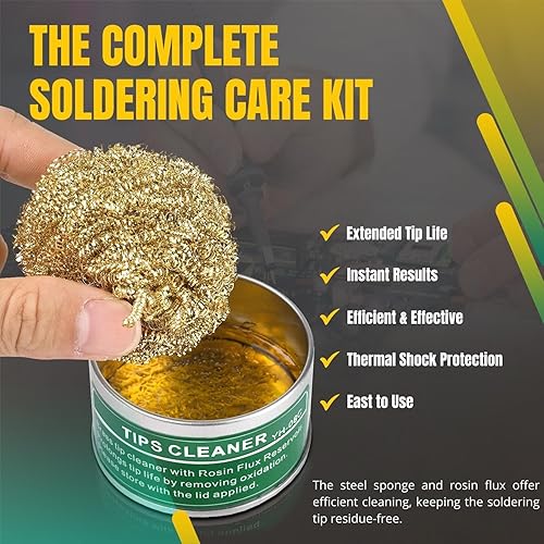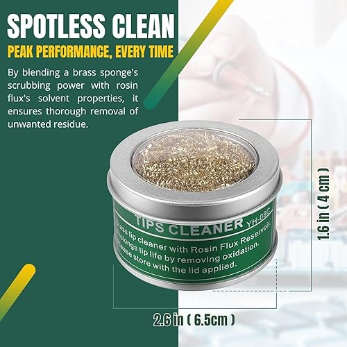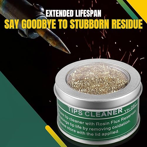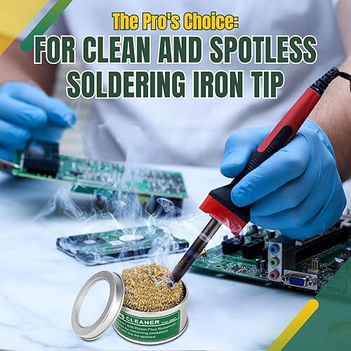 Flexzion Lötspitzenreiniger, Lötmittelreiniger Lötkolben Spitze Reiniger Halter, Reinigungsdraht mit Kolophonium Fluss, Messingdrahtschwamm Edelstahlhalter Düsenreiniger Elektronik Baukasten