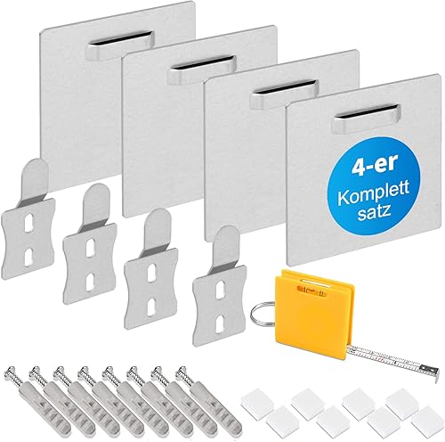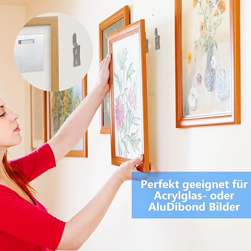 JAYZUUM Alu Dibond und Acrylglas Aufhängung, selbstklebende Bildaufhängung spiegelhalterung - Befestigungsset zum Aufhängen für Bilder oder Spiegel, bis zu 8kg (8er Set)