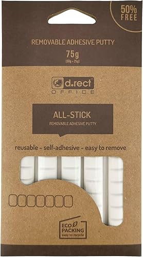D.RECT Klebepads Strips Stark - Wieder Ablösbar - Klebeknete Formbar - Blister mit 80 Pads - Selbstklebend ALL-STICK Klebestreifen - Kleben Powerstrips Weiß - Klebepunkte für Poster