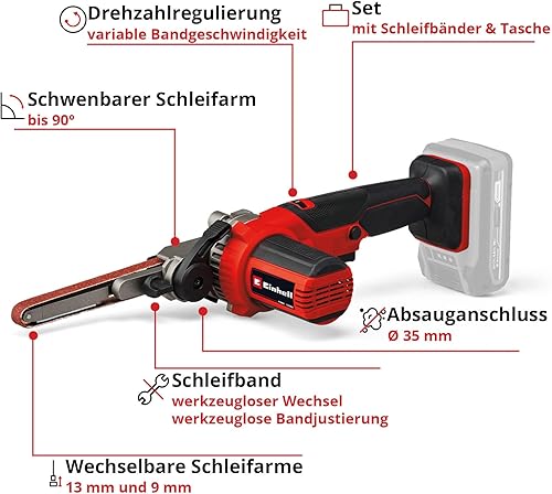 Einhell Akku-Bandfeile TE-BF 18 Li-Solo Power X-Change (18 V, Geschwindigkeit bis 1.700 m/min, 2x Schleifarme 9 mm und 13 mm, inkl. 12x Schleifbänder, ohne Akku)