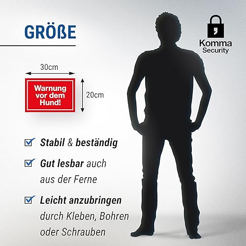 Komma Security Warnung vor dem Hund Schild - 30 x 20 cm Hinweisschild wetterfest Hundeschild Gartentor Einfahrtstor die Haustür Türschild Abschreckung Warnschild Einbruchschutz