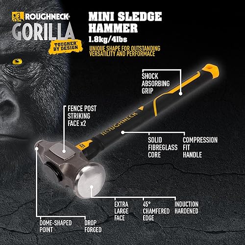 Roughneck Gorilla ROU65804 Mini-Vorschlaghammer, Fiberglas, 1,8 kg/1,8 kg, mit Kompressions-Griff