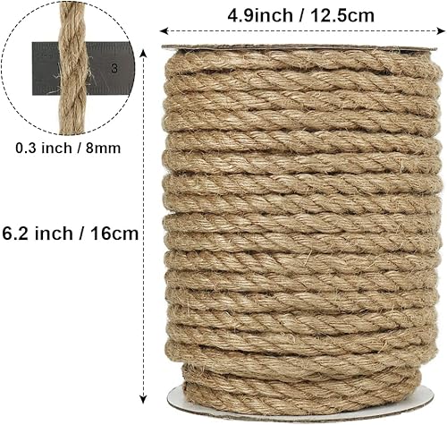 Vivifying Hanfseil, 30m 8mm Juteseil, Schwere Seil für Handwerk, Floristik, DIY, Dekoration, Bündel, Kratzbaum, Bündelung (Braun)
