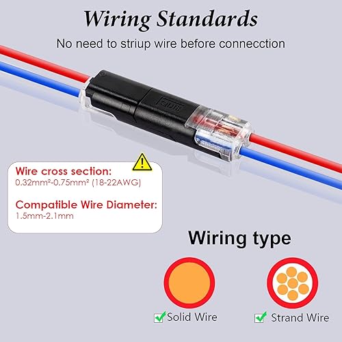 20 Stück Lüsterklemmen Steckbar Kabelverbinder 2 polig, Wasserdichte Lüsterklemme Durchgangsverbinder Kabelverbinder KFZ, 18-24AWG Draht-Schnellspleiß-Steckverbinder, Kabel Crimp Anschluss