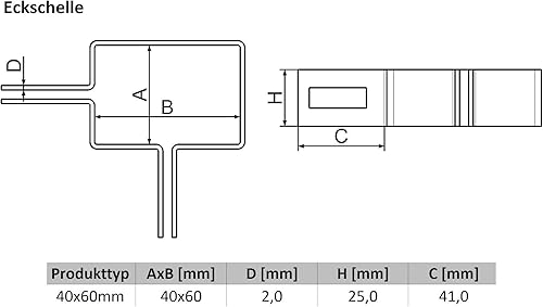 OuM Eckschelle 3 Stück, 40x60mm Graphit für Ø6mm Draht, Zaunschelle