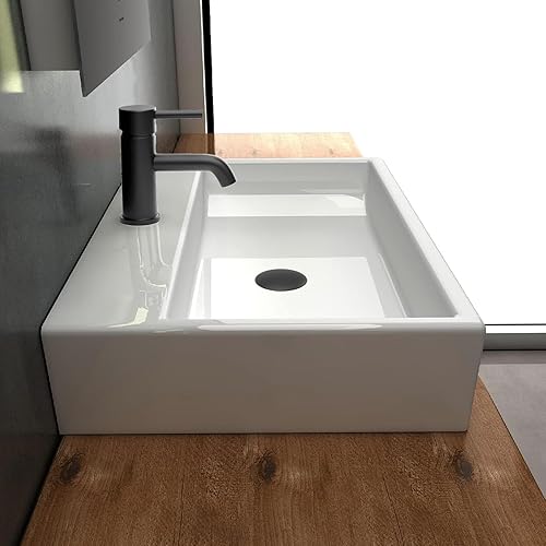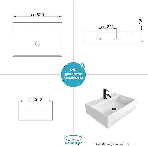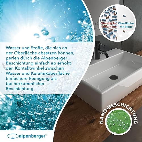 Alpenberger Aufsatz Handwaschbecken | Keramik Design Waschschale | Waschbecken Gäste WC | Waschbecken Rund 40 cm mit Nano & Überlauf | Weisses Waschbecken mit Hahnloch für ein Modernes Bad