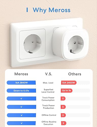 Meross WLAN Alexa Steckdose, Stromzähler für Steckdose mit Energieüberwachung, Smart Steckdose mit Zeitschaltuhr kompatibel mit Alexa und Google Home, Sprach- und Fernbedienung, 16A 3840W, 4 Stück
