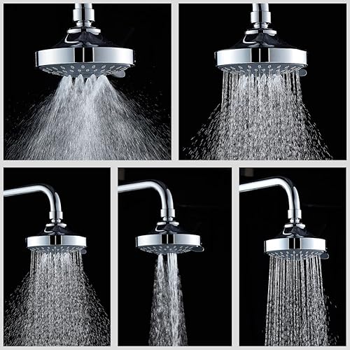 JINYOMFLY Regendusche Duschkopf, Hochdruck Kopfbrause Wassersparend, Regendusche mit Anti-Kalk-Düsen, Sparduschkopf mit 5 Sprühmodi, Runder Einbauduschköpfe, 360° Verstellbarer Kopfbrause, 4 Zoll