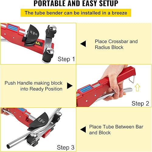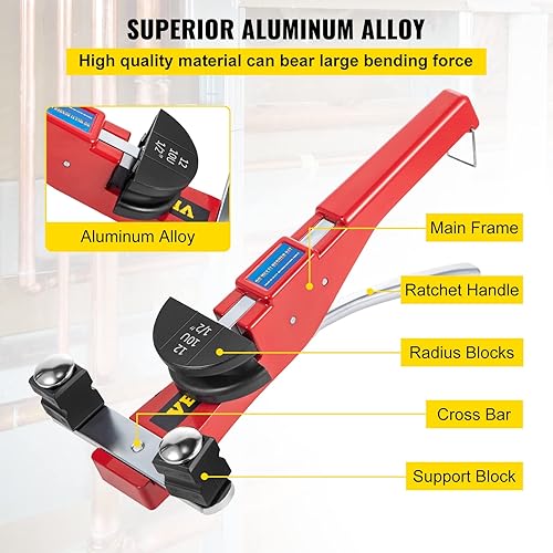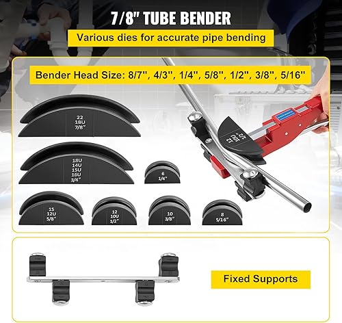 VEVOR Rohrbieger, 7 Matrizen 1/4-7/8 Zoll 6-22 mm Ratschen-Rohrbiegegerät-Set, 90°-Handrohrbieger mit Rückbiegevorsatz, 10 KN Biegekraft Handbiegemaschine