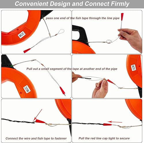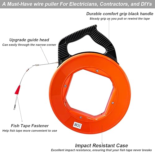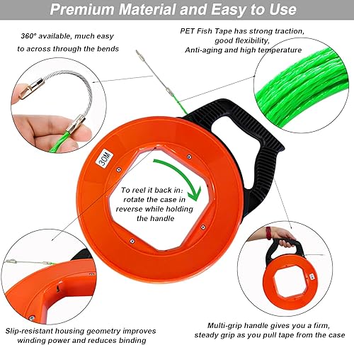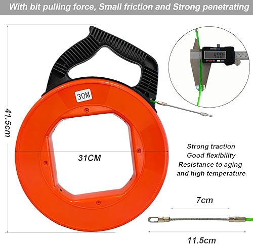 Einziehband Einziehspirale 30m Kabeleinziehhilfe für Leerrohre Einzugsband zur Kabelverlegung mit 4mm verdrillt bruchsicherem Kabel Zugdraht inkl. Führungsfeder Einziehfeder Einzugshilfe Kabel