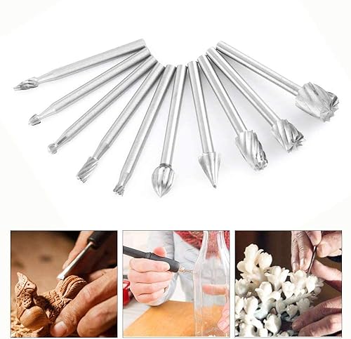 Fräser Set, 10 Stück 1/8 'Holzschnitzerei Bohrer Holzfräser für Bohrmaschine, HSS Bitfräsersatz Fell Drahtschleif Polierwerkzeug 39 mm Länge