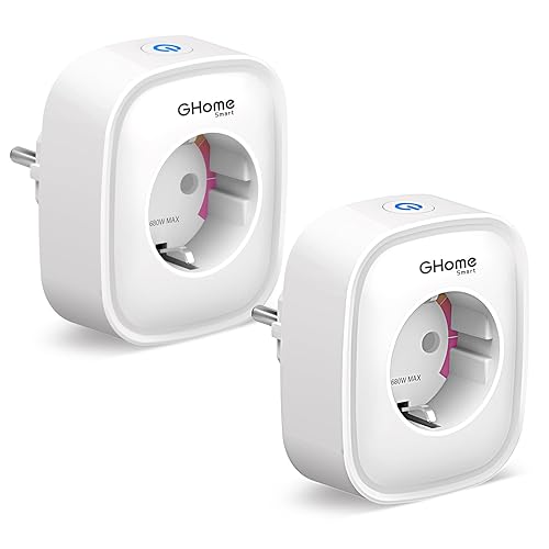 GHome Smart Wlan Steckdose 16A, WiFi Steckdose 4er Pack, Smart Home Plug Funktioniert mit Alexa Google Home, App Fernbedienung, Stromverbrauch Messen Sprachsteuerung Timer, NUR auf 2.4GHz WiFi