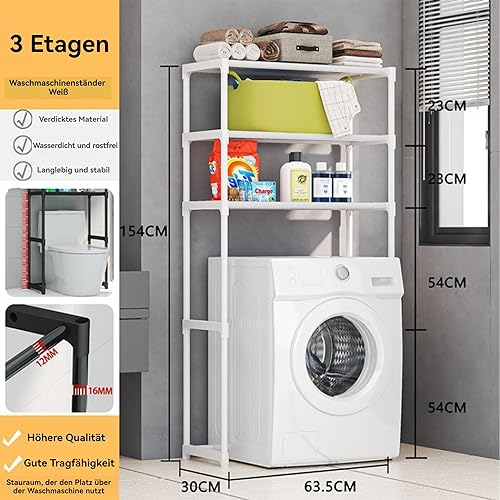 acfeco Waschmaschinenregal, Waschmaschinen Regal mit 3 Ablagen, Regal über Waschmaschine Toilette, Badregal Platzsparender Großem Fassungsvermögen (Weiß)