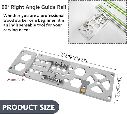 Winkelanschlag aus Aluminium und Rostfreiem Stahl, 340 * 108 * 8mm 90° Rechtwinklige Führungsschiene, Winkelanschlag Führungsschiene für Holzhandwerker