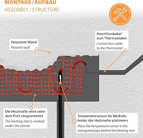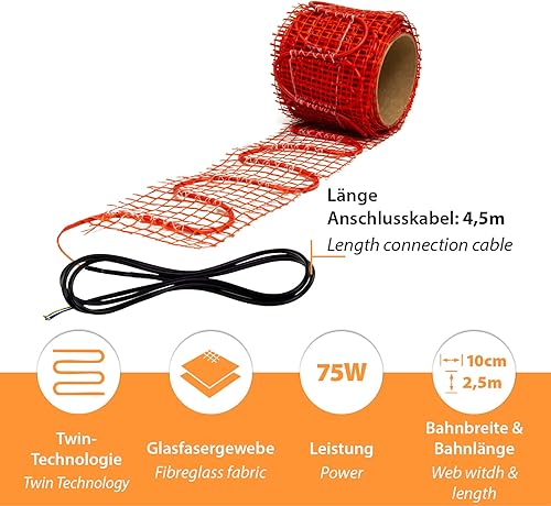 Schimmelstop Heizmatte 4,2m - Elektrische Schimmelheizung 230V | Wandheizung u. Deckenheizung gegen Schimmel Stockflecken und Pilzbefall | chlorfrei für Bad Dusche