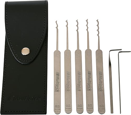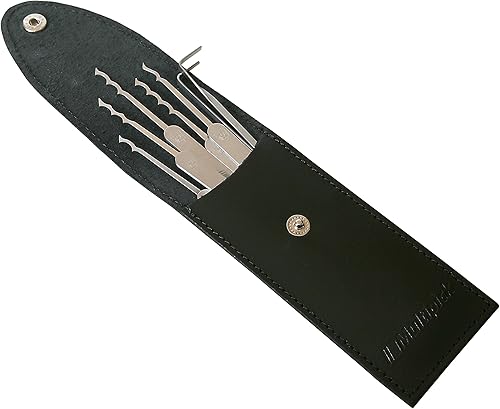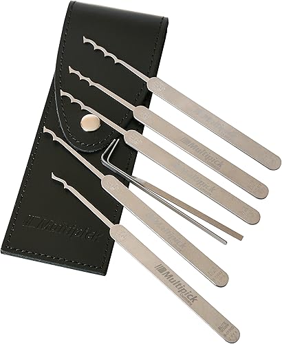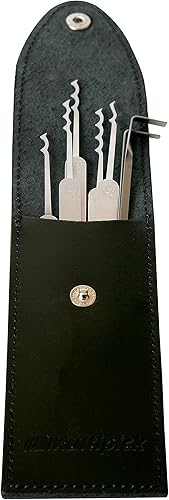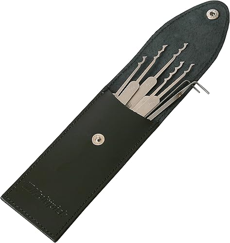 Multipick Profi Dietrich Set ELITE 7 BOGOTA Lockpicking Set 7 Teile aus hochwertigstem Federstahl in feinem Rindsleder-Etui mit Druckknopf - Original Multipick made in Germany Schwarz